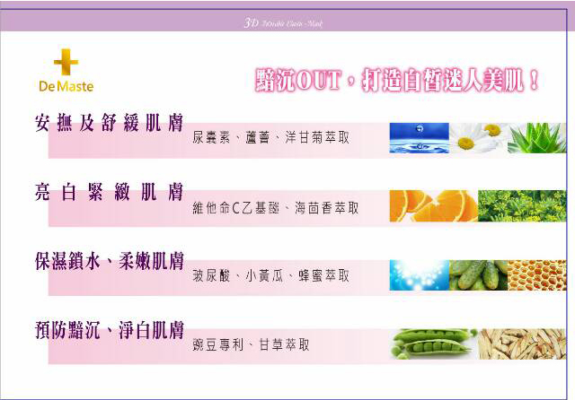 海王星3D美肌面膜 (皮膚專科診所、醫美會所、醫師指定使用) 5大功能:鎖水保濕、瑩白透亮、天然蠶絲、輕薄隱形、修護舒緩 5大特色:皮膚專科ODP研發概念、緊.拉.提、100% Lyocel纖維、3D隱形面膜再升級、 美國杜邦專利材質